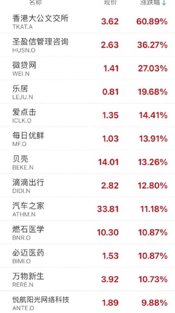 此外,文化艺术品权益交易平台香港大公文交所(TKAT.A)收涨近61%,涨幅居中概股之首。