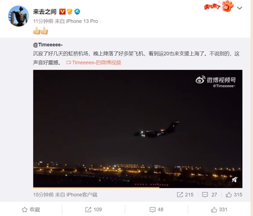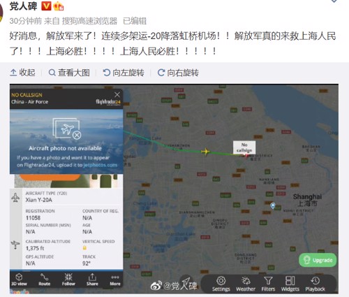 多架飞机3日晚间降落上海
