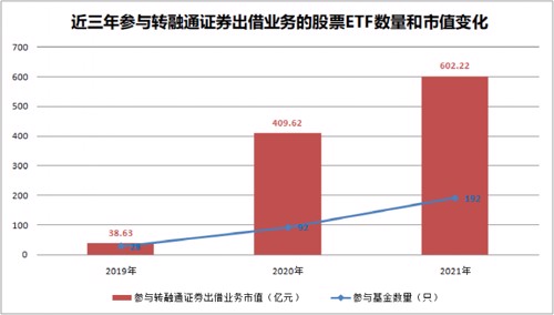 截至2021年基金年报,该制度实施2年半,已有193只公募基金参与了转融通证券出借业务,总市值达到602.22亿元,同比增长47%。