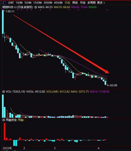 翱捷科技发行价为164.54元,上市首日就暴跌33.75%,而后一路向下不回头,最新股价64.2元,暴跌了60%。