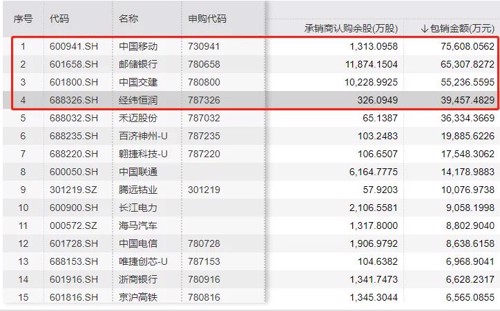 单从绝对金额来看,经纬恒润也在A股历史上排得上头几号,可以比被弃购的大央企、银行巨头媲美了,历史上弃购金额排在经纬恒润前面的只有3家,中国移动、邮储银行、中国交建,弃购金额分别是7.56亿元、6.53亿元、5.52亿元。
