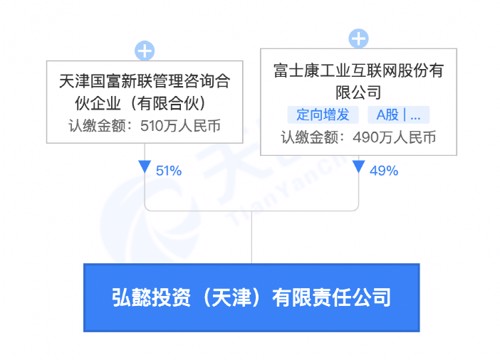 从股东方来看,该公司由天津国富新联管理咨询合伙企业(有限合伙)、工业富联共同持股,持股比例分别为51%、49%。