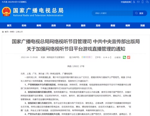 国家广电总局网络视听节目管理司、中宣部出版局联合发布的一则通知,#不得直播未经主管部门批准的网络游戏#直接冲上热搜榜首。