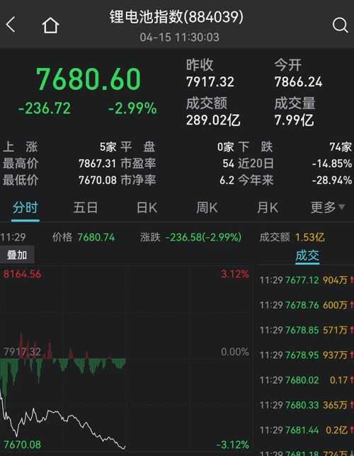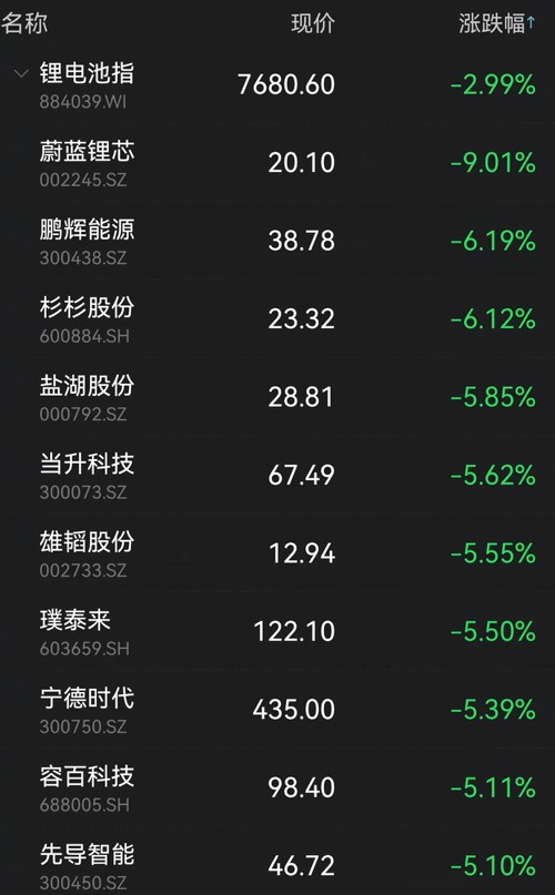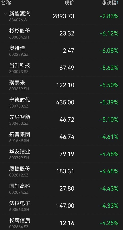 不仅宁德时代,整个新能源汽车指数、锂电指数跌近3%。