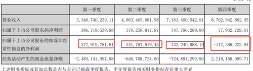 简单的说,业绩暴雷了。公司去年前三季度赚了15亿,四季度竟然不到1亿,去年前三季度,阳光电源净利润分别为3.87亿元、3.7亿元和7.5亿元;四季度净利环比下跌约九成,至0.78亿元,同比降幅也近九成,扣非后净利润为-1.2亿元。