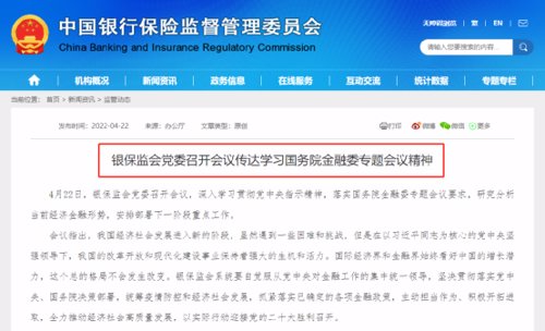 4月22日,银保监会党委召开会议,深入学习贯彻党中央指示精神,落实国务院金融委专题会议要求,研究分析当前经济金融形势,安排部署下一阶段重点工作。