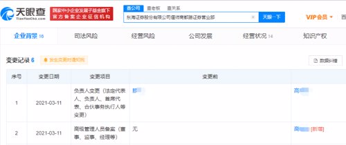 天眼查信息显示,东海证券偃师商都路证券营业部成立于2006年4月,2017年曾因地址变更而更名。2021年3月,该营业部负责人由顾某变更为高某某,在两个月后即遭遇总部专项调查。