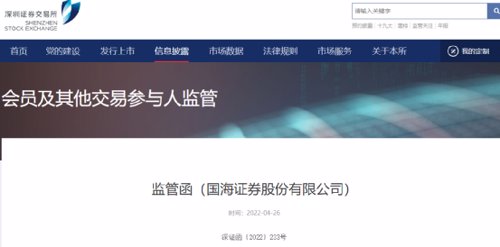 4月26日,深交所对国海证券出具监管函。深交所指出,国海证券作为“16胜通01”“16胜通03”“17胜通01”的主承销商,出具的承销文件存在虚假记载,尽职调查过程中未勤勉尽责。