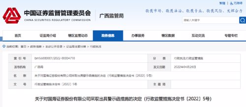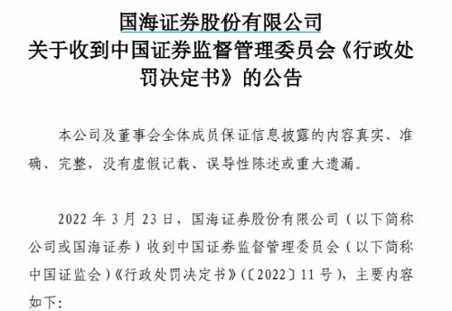 2021年9月底,证监会对国海证券立案展开调查,上月该罚单正式落地。
