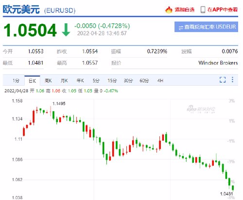 美元走强推动其他非美货币走弱,欧元兑美元EUR/USD跌破1.05关口,为2017年3月以来首次;英镑兑美元GBP/USD跌破1.25关口,为2020年7月以来首次。