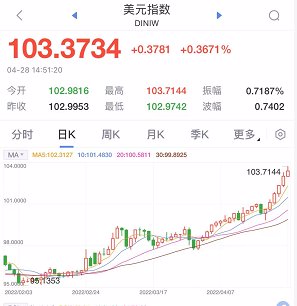 与此同时,美元指数升破103.5至2017年1月来新高。