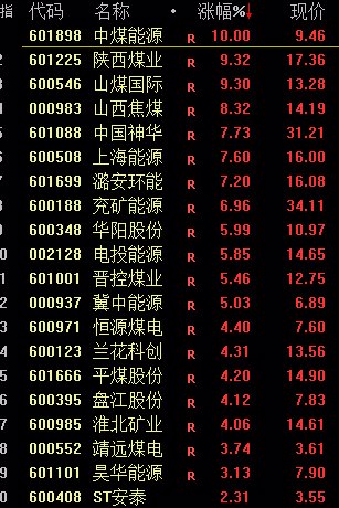 煤炭板块强势上攻,中煤能源回封涨停板,上海能源冲板,陕西煤业、山煤国际、中国神华等均回升
