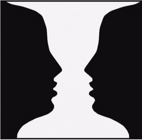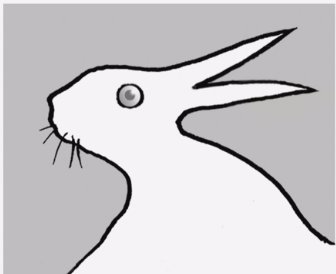 他在现场展现了两张PPT,意在表示不同的人从这两张图片中能够看到不同的东西(两张脸or花瓶、兔子or鸭子)。