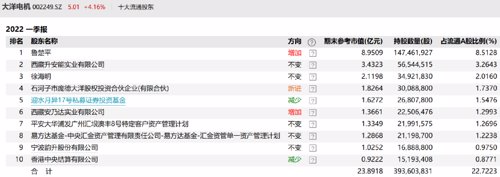 大洋电机的一季报数据显示,迎水投资旗下的迎水月异17号私募基金在今年一季度减持了该股247.50万股,期末持股数量降至2680.78万股,持股市值为1.63亿元。
