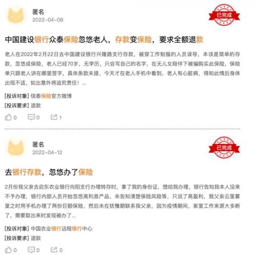 严芳随后向多家平台曝光、投诉。这两天,银行已直接联系她并告知处理结果:退保、退款。目前已经在走退款流程。