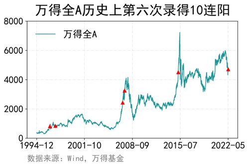 5月13日,万得全A收涨0.73%,并实现历史上第6次录得10连阳,此前5次均处于上涨途中。是时候谈谈抄底了。