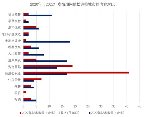 相比2020年的房地产政策,易居研究院表示,当前政策具有更加长期性并非短期针对疫情期间的政策;例如今年的六部委对楼市政策的表态更多是出于三道红线下房企暴雷频繁,为防范化解房企风险,研究提出房企向新发展模式转型的配套措施,包括房产税,并购贷等,城市放松政策主要聚焦在公积金放松、购房补贴、住房贷款等方面;而2020年重点在疫情期间的短期政策,例如贷款展期续期,预售政策的放松等。城市放松政策主要聚焦在土地出让金缓交、落户政策放松、住房公积金和项目预售方面。