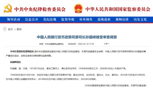 原司长孙国峰接受审查调查