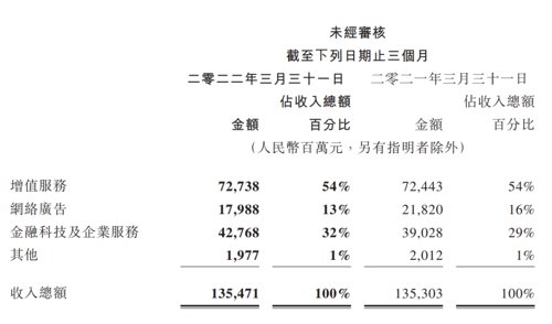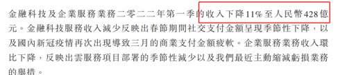8、金融科技及企业服务业务二零二二年第一季的收入同比增长10%至人民币428亿元。