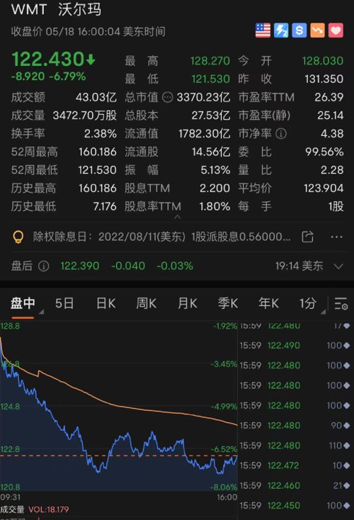 多重因素影响下,周三零售板块也被带崩。沃尔玛再跌6.79%,百思买股价下跌10.5%,梅西百货跌11%,科尔百货跌超11%,Dollar Tree跌超16%。