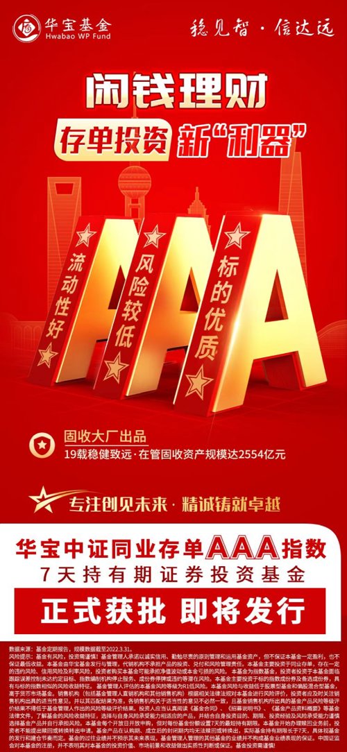 自2003年7月以来,华宝基金固定收益业务已发展近19年,经历债券的牛熊交替,团队历来注重信用风险控制,对信用风险“零容忍”,旗下固定收益业务未发生重大信用风险事件。截至2022年一季度末,华宝基金公募固定收益业务管理总规模达2554亿元,稳居行业管理规模第一梯队,其中,债券型基金+偏债混合型基金+部分灵活配置混合型基金管理规模达387亿元。2022年一季度,华宝基金摘得天相投顾基金管理人及债券型投资管理双料AAAAA最高评级。