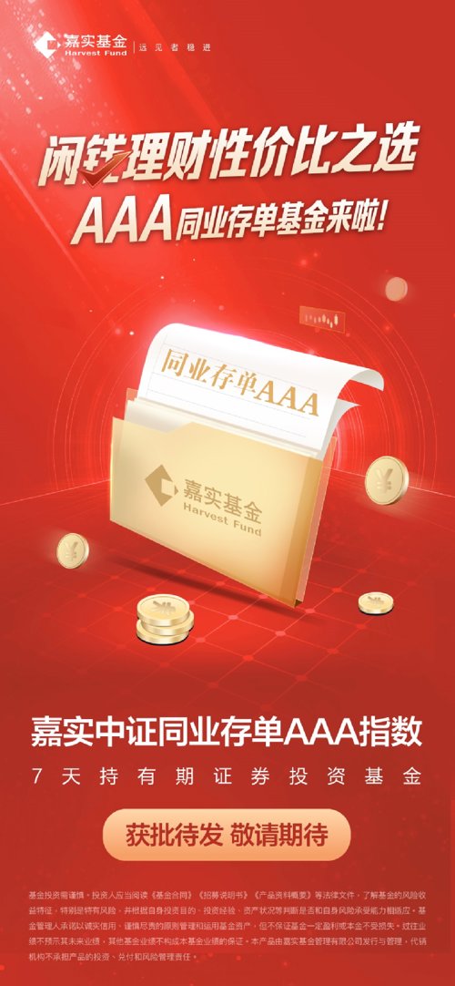 嘉实基金表示,嘉实同业存单指数基金的获批,标志着嘉实基金在短期理财工具赛道再添新丁。据悉,嘉实同业存单指数基金将借助“嘉实信用分析系统”及嘉实中央研究平台,基于深入的宏观信用环境、行业发展趋势等基本面研究,运用定性定量模型,在自下而上的个券精选策略基础上,采取适度分散的行业配置策略,从组合层面动态优化风险收益。