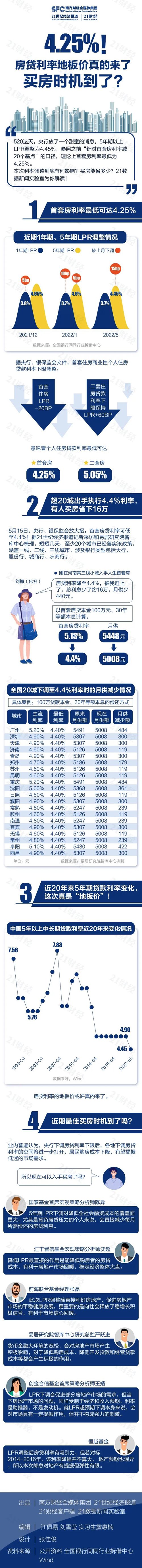 为支持居民刚性和改善性住房需求,5月15日,央行和银保监会发布通知,调整差别化住房信贷政策,首套房商贷利率下限调降至LPR减20个基点。此次调整后,首套房贷款利率最低可达到4.25%,二套房为5.05%。