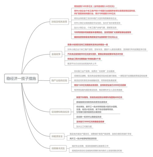 1、财政政策:进一步加大增值税留抵退税政策力度;加快财政支出力度,督促指导地方的部门加快预算执行;加快地方政府专用债券发行使用,并扩大适用范围;通过融资担保政府采购,支持中小微企业舒困发展;加大各类保险返还力度。