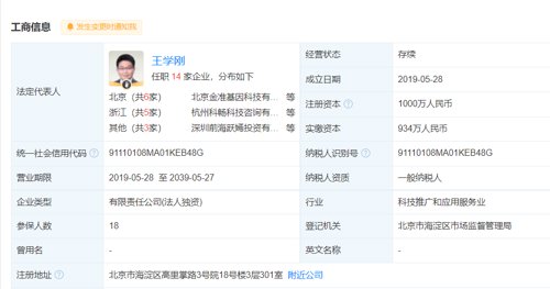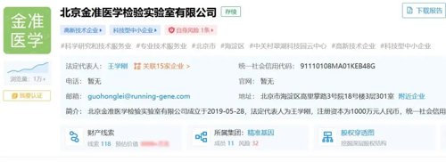 企查查信息显示,北京金准医学检验实验室有限公司成立于2019年5月28日,注册资本为1000万人民币,法定代表人为王学刚。