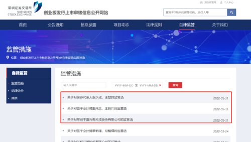 日前,深交所创业板一次性公布了三份监管函,对IPO终止申报的丰盛光电及保荐代表人、签字会计师采取书面警示的监管措施。