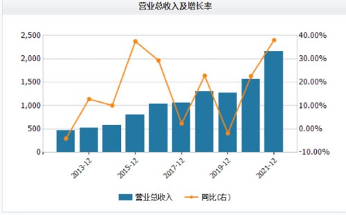 比亚迪近年营收快速增长:2016年营收首次突破千亿大关,2021年营收翻番达到2161亿,相隔时间仅 5年。