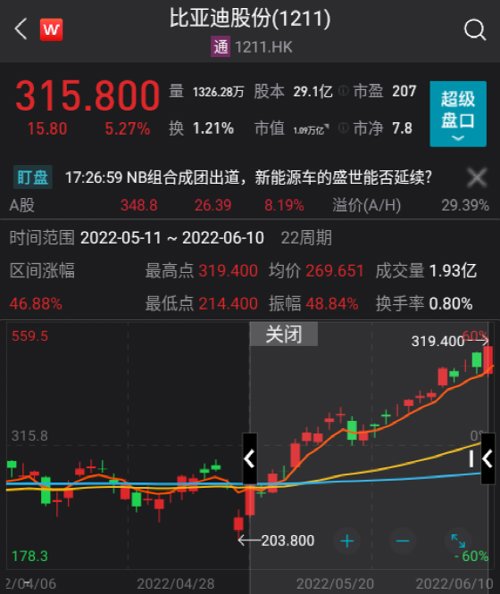 这轮万亿市值来自比亚迪股价的一路狂飙:自去年10月高点回落后, 今年5月起,比亚迪重启上涨行情:
