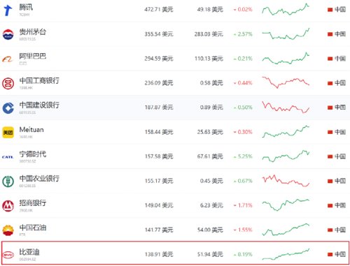 比亚迪更可列中国所有上市公司市值榜第11位置: