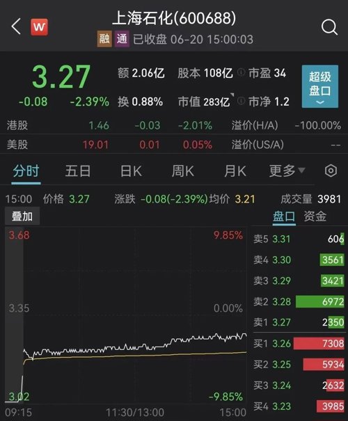 6月20日,上海石化(600688.SH)早盘以3.15元低开,盘中一度震荡上行,但最终下跌2.39%报收3.27元,并没有出现此前投资者担心的跌停,可见火灾事故对其股价影响不大。