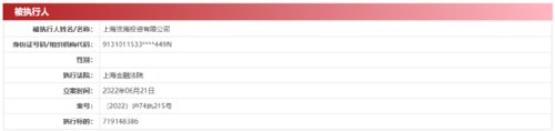 中国执行信息公开网显示,6月21日,密春雷、上海览海投资有限公司、览海控股(集团)有限公司新增被执行案件,执行标的约7.19亿元,执行法院为上海市金融法院,案号均为(2022)沪74执215号。