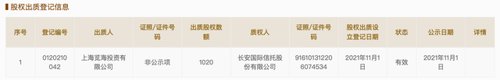 2021年11月,览海投资所持禾风医院部分股权被出质给长安国际信托,目前仍有效。览海投资之前持有禾风医院51%股权,认缴出资额即1020万元。