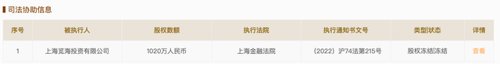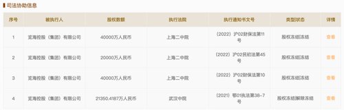 在览海集团过往的司法冻结信息中,上海人寿2.1亿的股权曾被武汉中院冻结,波及金融机构。