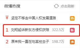 7月7日午后,刘翔起诉新东方侵权获赔一事被曝光后,又迅速冲上微博热搜第一,引发网友热议。