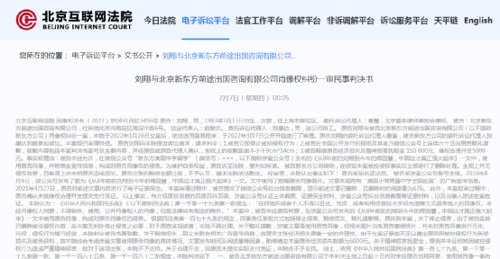 7月7日,北京互联网法院公开了《刘翔与北京新东方前途出国咨询有限公司肖像权纠纷一审文书》。