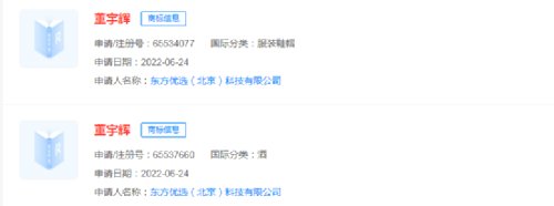 据悉,近期新东方还申请注册了多个“东方甄选”直播间主播名字商标,包括“董宇辉”“方脸哥”“王涛顿顿”“孙楚涵悠悠”“石明明明”等,国际分类涉及教育娱乐、广告销售、服装鞋帽等,天眼查APP显示,目前这些商标进度均为申请中。