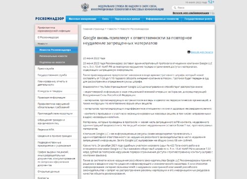 当地时间6月22日,俄联邦通信、信息技术和大众传媒监督局披露,谷歌有限责任公司及其信息资源此前曾多次因违反俄罗斯法律未删除违禁信息而被追究行政责任。为此,谷歌公司被罚款总计6800万卢布。