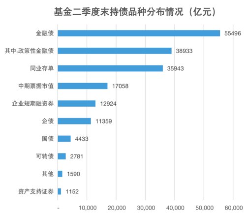 Wind统计显示,截至今年6月地,金融债和同业存单两大品种的基金持仓分别达5.55万亿和3.59万亿,相较于债券投资总市值规模占比分别为38.86%和25.17%。