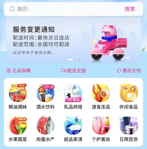 7月28日,每日优鲜的小程序首页发布一则服务变更通知,配送时间由原来的最快30分达改为仅最快次日达,配送范围为全国均可配送。有消息称,每日优鲜30分钟极速达业务全国关停,仅余次日达服务。