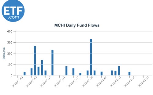 6月以来,基金吸金强劲,截至目前共吸金16.84亿美元,折合114亿元人民币。其中6月30日,吸金3.33亿美元,创ETF设立以来的最高纪录。MCHI 跟踪的是MSCI 中国指数。