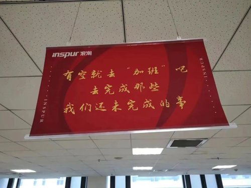 博主还晒出几张浪潮曾使用过的标语图,诸如“大家加才是真的加,加班真好”“白天加白班不瞌睡;晚上加晚班睡不着”“他加我也加,想跑也跑不了”等,悬挂在室内。