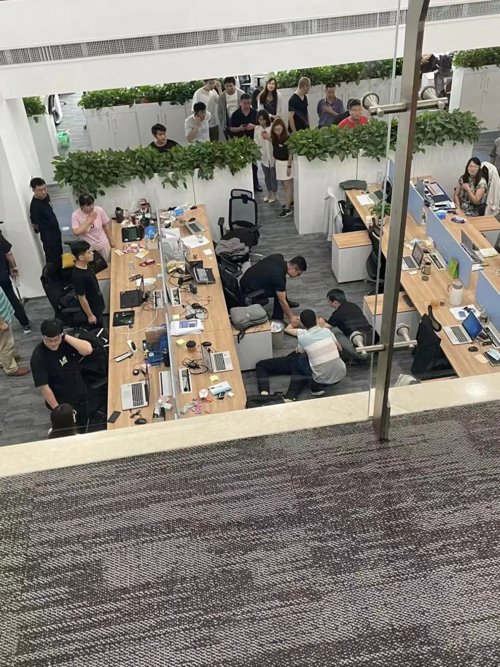 8月1日下午12点52分,一名为“王落北”的微博网友在网上发文“群里看到的,据说浪潮倒了一个,真的假的?希望人平安”,在该网友上传的图片中显示,在一办公室内有一人倒地,众人围观抢救。