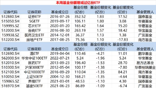 此外,易方达医药ETF、国泰养殖ETF、广发基建50ETF也均出现1亿份以上净赎回,其中华泰柏瑞沪深300ETF、华夏上证50ETF、广发基建50ETF自7月以来均出现份额缩水。