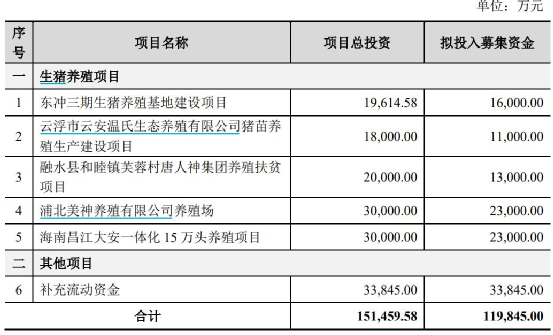 除了神农集团以外,因猪价高区维稳而决定加速释放产能的猪企还有很多,例如温氏股份计划提高能繁母猪和仔猪投苗数量,天康生物新的养殖基地投产扩大产能等。另外,唐人神在4日更新的2022年定增预案显示,公司计划非公开募集11.98亿元,其中近9亿元计划投向海南、广西和广东等地生猪养殖项目。