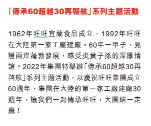 港股今日小幅震荡收红,三大股指涨幅均在1%以内,但已实现三连涨。分板块看,医药生物、半导体、海运、黄金及证券等板块涨幅居前,海运股东方海外涨超7%,逼近前期高点。科网股走低,阿里巴巴绩后跌2.21%、腾讯跌1.41%;受国际油价下跌影响,“三桶油”今日均收跌,其中,中石油跌2.28%,为恒指成分表现最差。旺旺集团成立于1962年,前身为中国台湾宜兰食品工业股份有限公司。1983年创立旺旺品牌,且于90年代初期即赴大陆投资设厂。