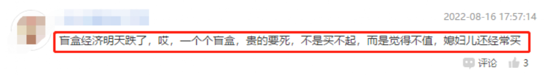 “该整顿了,盲盒太坑人”“购买盲盒整体上肯定要吃亏的,商家追求利益最大化是本性”“贵得要死,不是买不起,而是觉得不值”……,网友们纷纷表示。还有的网友称,“盲盒和彩票的区别是什么呢”。